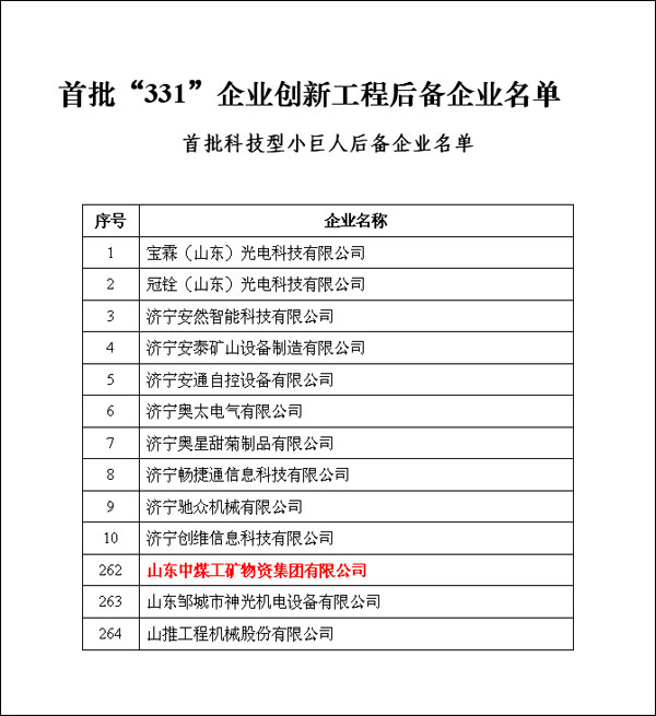 近日,经济宁市科技局批准,山东中煤工矿集团成功入选济宁市首批科技型“小巨人”企业。